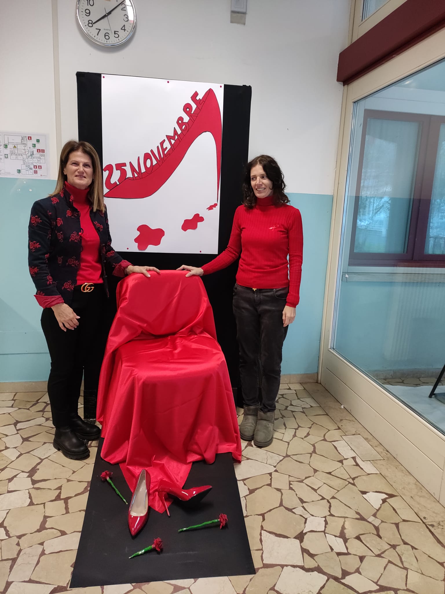 La sedia rossa simboleggia il posto occupato da una donna che non c’è più a causa della violenza di un uomo.