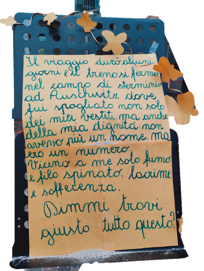 Gli alunni della SSPG di Pieve di Bono hanno lavorato alle biografie di alcuni personaggi chiave nella storia della persecuzione ebraica, definiti Giusti tra le Nazioni. Riconoscimento attribuito ai non ebrei che, in modo disinteressato e mettendo a rischio la propria vita e dei propri cari, salvarono gli ebrei durante la Seconda guerra mondiale. Nella notte della ragione, la scelta dei Giusti fu di rispettare la legge morale radicata nel proprio animo, anziché le aberranti disposizioni normative del tempo.